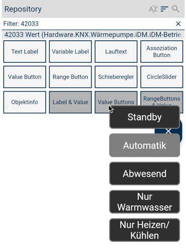 Beispielsweise werden bei einer Variable mit Assoziationen "Value Buttons" oder bei einer Variablen mit Minimum/Maximum "Range Buttons & Wert"