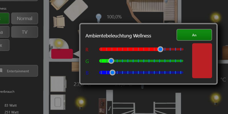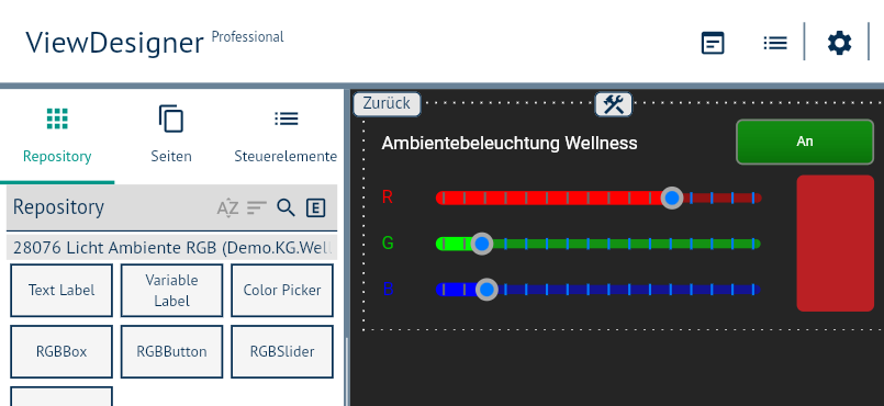 In IPSView wird für diese Variable unter anderem eine RGB-Box angeboten; diese ermöglicht die Darstellung des aktuellen Farbwerts der Variablen. Folgende Schritte sind nötig: