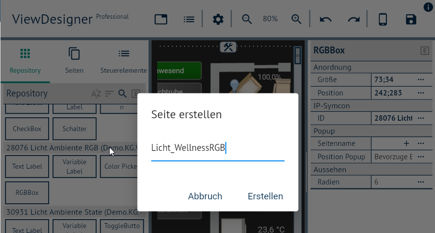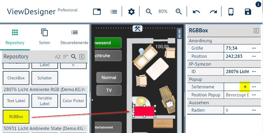 Popup-Seite im Designer